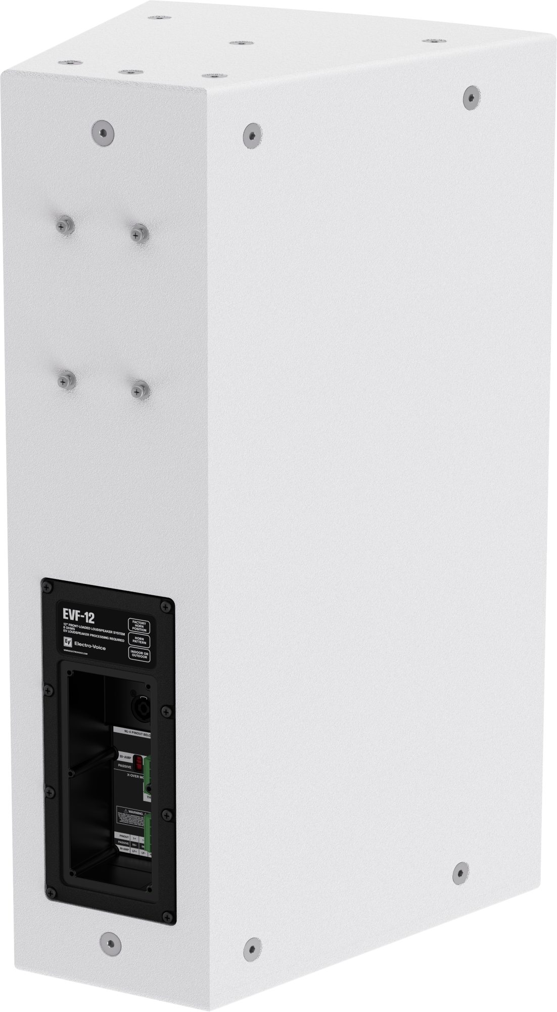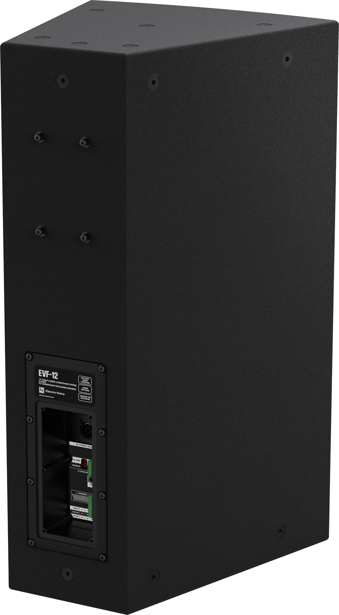 EVF-12 G2 hỗ trợ nhiều phương án treo lắp khác nhau như U-bracket, giá treo tường, eyebolt và các bộ rigging kit. Ngoài ra, mặt sau thùng loa còn được tích hợp 4 điểm Omni-mount, giúp mở rộng khả năng gắn phụ kiện tương thích trực tiếp lên thùng loa. Điều này hỗ trợ đáng kể cho các đơn vị tư vấn, thiết kế và thi công khi cần tối ưu bố trí loa trong từng dự án thực tế.