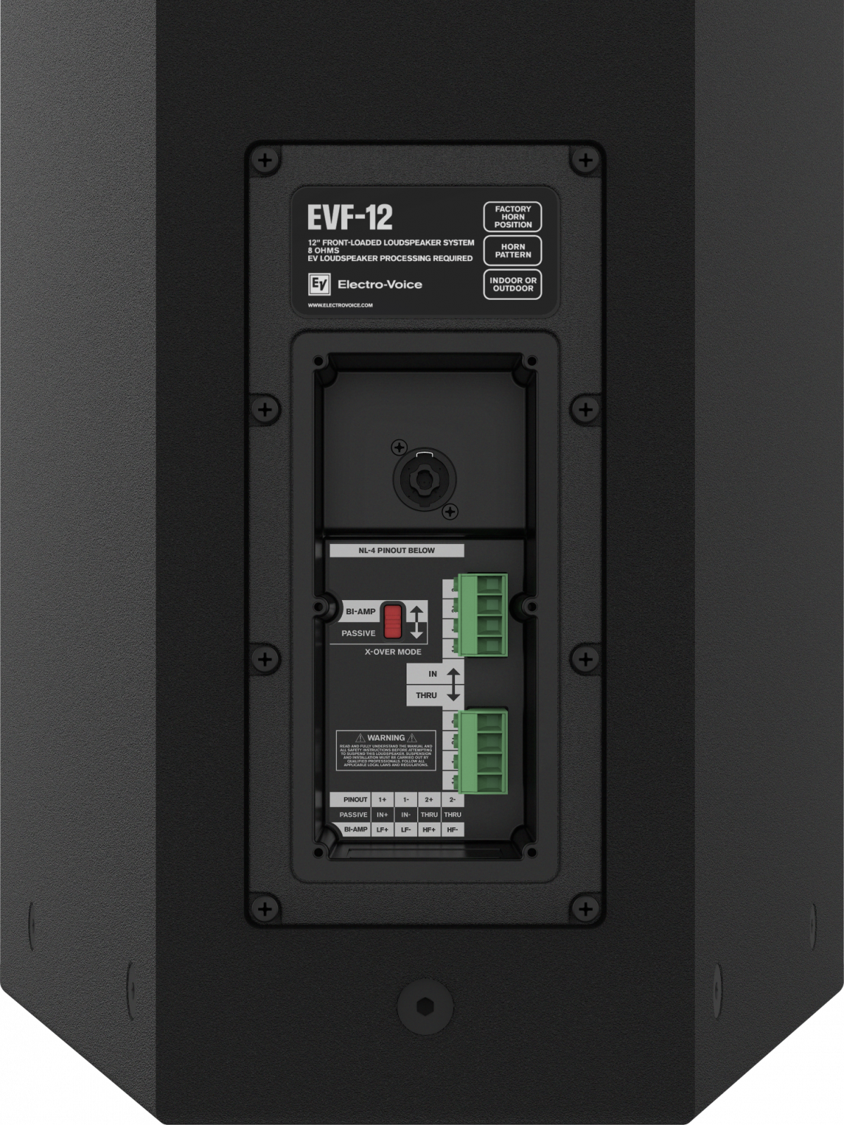 Mặc dù vẫn giữ nguyên kích thước bên ngoài từ thế hệ đầu tiên để thuận tiện cho việc thay thế hoặc đồng bộ lắp đặt, gần như toàn bộ cấu trúc bên trong của EVF-12 G2 đã được làm mới từ đầu. Sản phẩm được trang bị củ loa EV thế hệ mới do hãng tự phát triển, mạch phân tần suy hao thấp, họng loa HF hiệu suất cao, cùng preset FIR pha phẳng với độ trễ hệ thống dưới 10 ms. Bên cạnh đó là cụm cổng kết nối được thiết kế công thái học, hỗ trợ việc thi công và đấu nối trở nên nhanh gọn hơn.